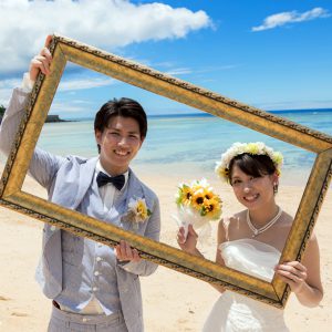 大人用サングラスはハート型。ポップな雰囲気のサングラスで、楽しさいっぱいの撮影をお楽しみください。※沖縄本島、宮古島限定です。