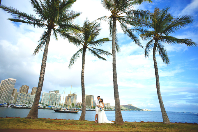 沖縄フォトウェディング先輩花嫁のエンパイアラインドレス